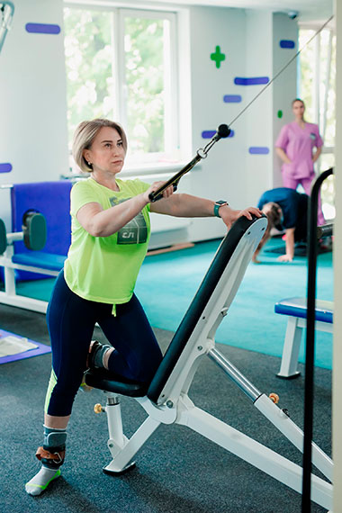 Високі результати реабілітації досягаються завдяки індивідуальним заняттям із персональним реабілітологом під наглядом лікаря.